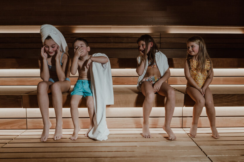 Our newly opened family spa has something for everyone, young and old alike. While the children discover the tube and wave slides, the little ones can enjoy their first experiences in the water in the children’s pool with a mini slide – accompanied by mom and dad. Afterwards, the spacious indoor pool invites you to relax and enjoy a few laps, and the textile sauna is the perfect place to unwind together. Comfortable family cabins are available for relaxing breaks, where everyone can unwind together.